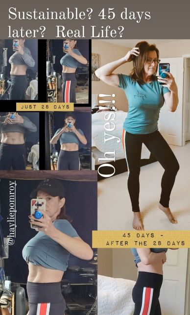 45 days after the end of my 28 days. I have changed. I’m not desperate any longer. I did exactly what Haylie said in her program and I repaired my sagging Metabolism. But there were even bigger changes.