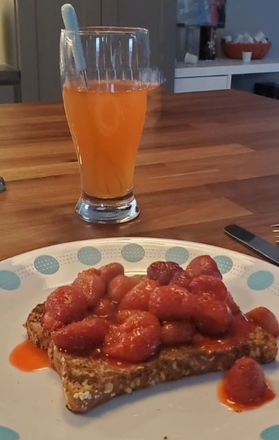 Breakfast within 30 minutes of waking. Like strawberry french toast! NO exercise before eating!