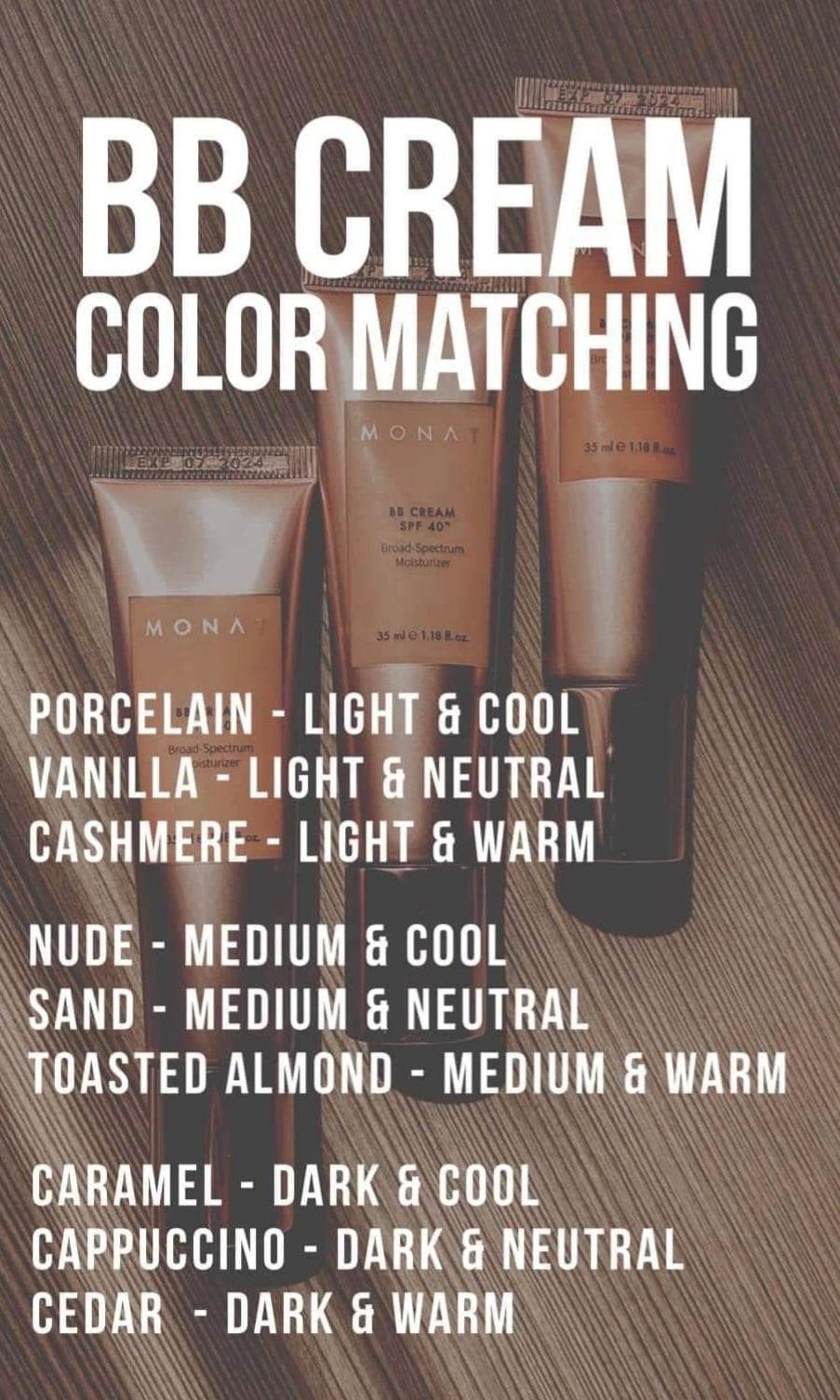 Want a bit of sun kissed skin? Choose one of 9 shades BB Cream with SPF40. So light!