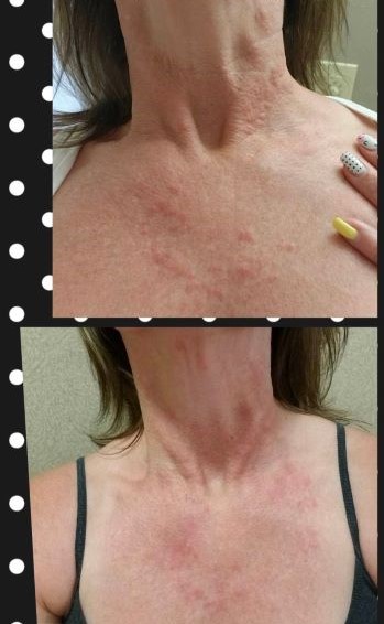😎Chemical sunscreens work by absorbing the UV light and causing it to undergo a chemical reaction that prevents it from damaging your skin. Chemical sunscreens can cause the exact opposite desired effect, instead burning your skin. In most cases, redness, welting and swollen skin also happen with a reaction. I strongly urge clients to use a mineral or physical sunscreen instead. The photo below is an hour after using a popular drugstore chemical sunscreen. How to know? Unless it says Zinc, ‘Mineral’ or ‘Physical’, its chemical.