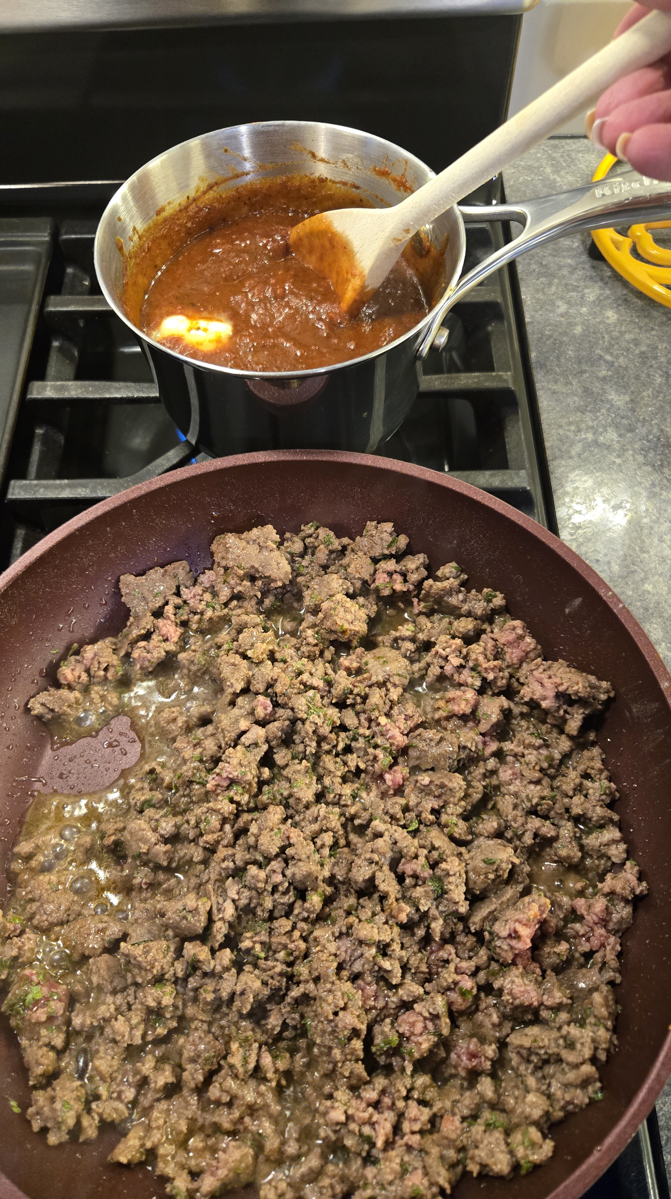 The sauce thickening.