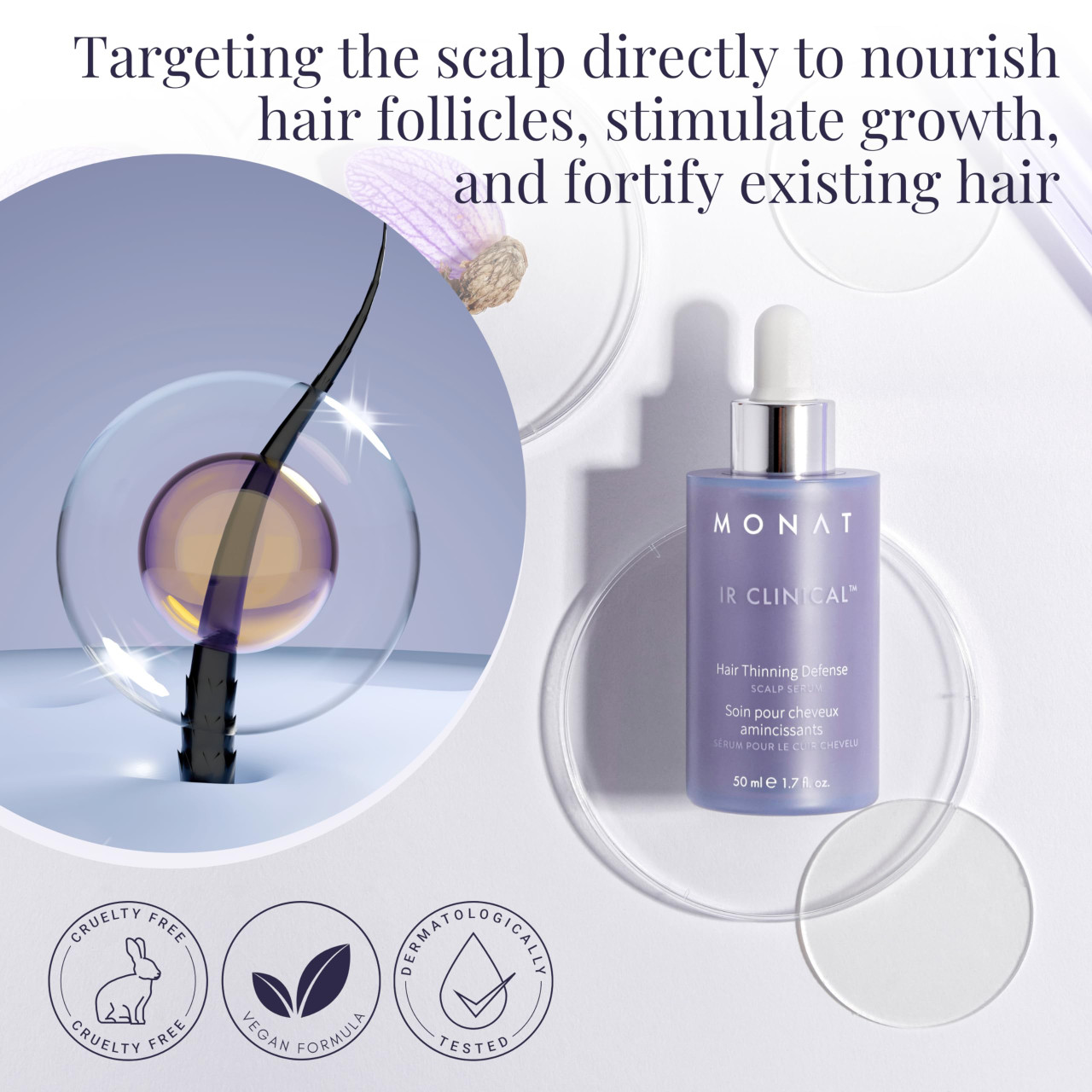 - MONAT Hair Thinning Defense – Lightweight, non-greasy serum immediately reduces breakage, reduces hair fall by 92%* and has shown noticeable results of thicker, fuller-looking hair in 60 days**.