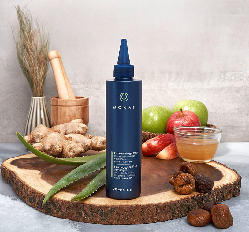 💡 Pro Tips: Consider Monat’s vinegar rinse to rebalance scalp. A vinegar rinse can help balance the pH of an oily scalp. Add weekly oil treatments with Rejuveniqe to address oil production.
